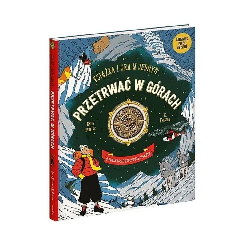 Znalazłeś się sam w samym środku Alp i nie możesz liczyć na żadną pomoc. Na szczęście dostarczymy Ci wskazówek "Jak przetrwać w górach" na dwadzieścia pięć sposobów. Gamebook "Jak przetrwać w górach" to innowacyjny produkt, który łączy w sobie niesamowitą opowieść i pełną przygód rozgrywkę. Czytelnik sam decyduje o tym, w jaki sposób potoczą się losy głównego bohatera. Jako jedyny przeżył katastrofę śmigłowca i "wylądował" w Alpach. Teraz czeka go bardzo trudne zadanie, bo musi przeżyć w ekstremalnych, górskich warunkach. Towarzyszy mu jedynie spinner przetrwania, który służy do koordynacji wyprawy. Należy się nim posługiwać bardzo uważnie, bo każdy nieostrożny ruch oznacza koniec gry. Do mety prowadzi ponad dwadzieścia dróg. Finał również ma kilka wersji. Przygód, które im towarzyszą, trudno zliczyć. Książka rozwija wyobraźnię i logiczne myślenie oraz dostarcza przydatnej wiedzy. Uczy czytelnika: rozpalać ognisko, przewidywać pogodę z chmur, opatrywać rany, unikać dzikich zwierząt, rozpoznawać trujące i jadalne rośliny oraz mierzyć czas bez zegarka i ustalać kierunki bez kompasu.