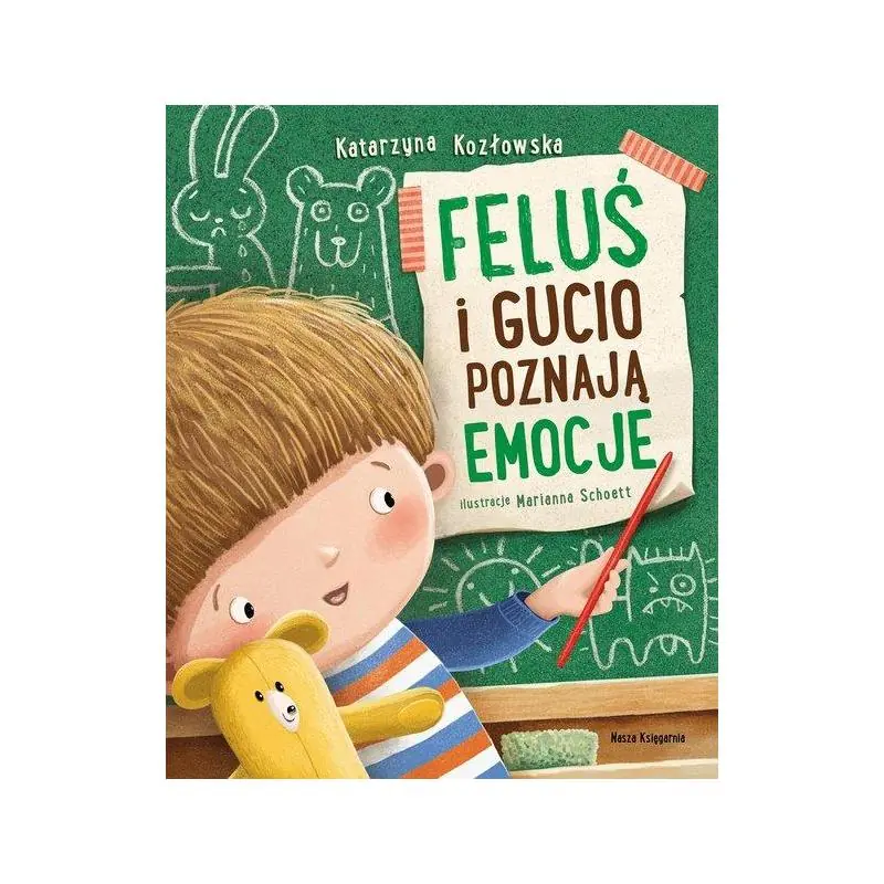 Feluś jest przedszkolakiem i każdego dnia doświadcza różnych emocji. Wizyta u lekarza okaże się próbą odwagi. Przygotowanie śniadania dla rodziców będzie powodem do dumy. A kiedy kolega przebiegnie po świeżo zbudowanym zamku z piasku, Felusia ogarnie złość. Czy te doświadczenia wydają się Wam znajome? Jak zawsze Felusiowi towarzyszy ukochany miś Gucio, który tłumaczy zawiły język emocji na bliskie i zrozumiałe każdemu maluchowi doświadczenia zmysłów – dla Gucia radość ma słodki smak, spokój przypomina dźwięki harfy, a tęsknota jest jak deszczowy dzień. Podczas lektury książki mały czytelnik znajdzie się w wielu dobrze znanych sobie sytuacjach. Razem z Felusiem i Guciem nauczy się rozpoznawać, nazywać i akceptować swoje emocje. Będzie też wiedział, skąd się biorą, w jaki sposób można je wyrażać i jak sobie z nimi radzić. Katarzyna Kozłowska – absolwentka Pedagogiki Specjalnej Uniwersytetu Adama Mickiewicza oraz Edukacji Artystycznej Uniwersytetu Artystycznego w Poznaniu. Nauczycielka wychowania przedszkolnego. Stara się pomagać maluchom i ich rodzicom w radosnym i bezstresowym rozpoczęciu przygody z przedszkolem. Sama doświadczenie adaptacji synka w przedszkolu ma już za sobą. Marianna Schoett – ilustratorka książek dla dzieci. Ukończyła Państwowe Liceum Sztuk Plastycznych w Bydgoszczy, a następnie kontynuowała naukę na Wydziale Sztuk Pięknych UMK w Toruniu. Rysowanie ilustracji dla dzieci to jej hobby, któremu całkowicie poświęca czas wolny. Powyższy opis pochodzi od wydawcy.