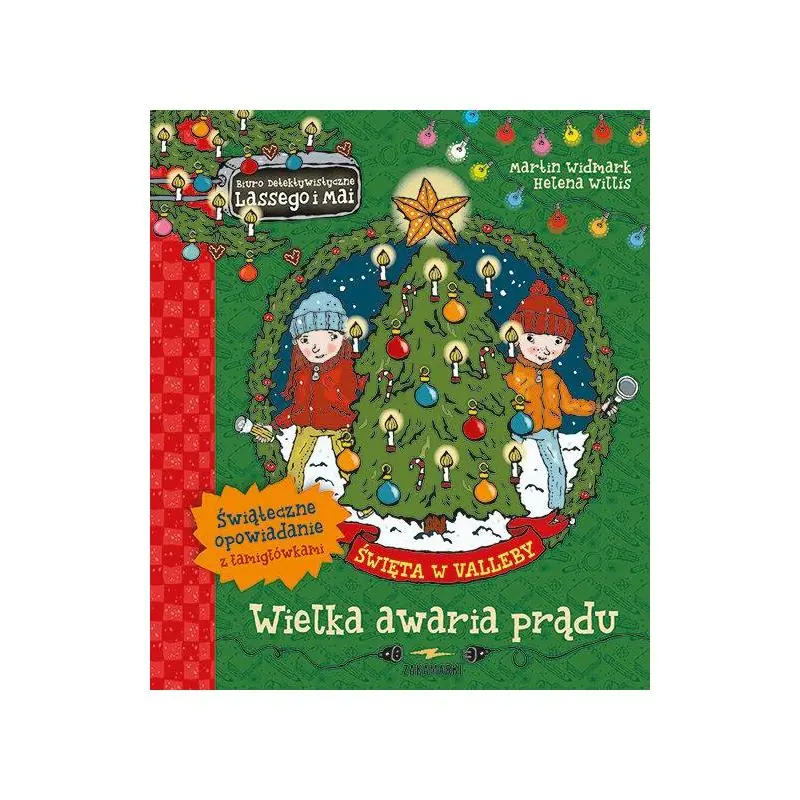 "W wigilijny wieczór wydarza się coś nieoczekiwanego: w całym Valleby gaśnie światło i zapada nieprzenikniona ciemność. Jak w takich warunkach świętować Boże Narodzenie? Lasse i Maja próbują dociec, co spowodowało awarię prądu, lecz nie jest to łatwe. Pomóż im rozwiązać zagadkę! Weź czynny udział w śledztwie! Wyjaśnij wraz z Lassem i Mają przyczynę awarii prądu! Odczytaj zaszyfrowane wiadomości, wypatrz szczegóły, znajdź pogubione prezenty, rozpoznaj postaci w ciemnościach, przejdź zawiłe trasy i spróbuj wydedukować, co się wydarzyło! W trakcie CZYTANIA rozwiązuj ZADANIA! Kolejne tytuły serii Biuro Detektywistyczne Lassego i Mai od lat wybierane są książką roku przez szwedzkie Jury Dziecięce, czyli niemal 50 000 głosujących dzieci, a tym samym nie schodzą w Szwecji z list bestsellerów. W Polsce również cieszą się dużą popularnością. Akcja książek rozgrywa się w małym szwedzkim miasteczku Valleby i jego okolicach. Główni bohaterowie, Lasse i Maja, chodzą do tej samej klasy i wspólnie prowadzą małe biuro detektywistyczne. Książki świetnie nadają się dla dzieci, które właśnie zaczynają samodzielnie czytać. Duża czcionka, duża ilość charakterystycznych czarno-białych ilustracji oraz trzymająca w napięciu akcja sprawiają, że nawet najbardziej oporni mali czytelnicy czytają je z wypiekami na twarzach. Do końca 2022 roku w Polsce ukazało się 29 tytułów: „Tajemnica diamentów”, „Tajemnica hotelu”, „Tajemnica cyrku”, „Tajemnica kawiarni”, „Tajemnica mumii”, „Tajemnica kina”, „Tajemnica pociągu”, „Tajemnica gazety”, „Tajemnica szkoły”, „Tajemnica złota”, „Tajemnica zwierząt” , „Tajemnica meczu”, „Tajemnica szafranu” , „Tajemnica biblioteki”, „Tajemnica miłości”, „Tajemnica kempingu”, „Tajemnica galopu”, „Tajemnica szpitala”, „Tajemnica pływalni”, „Tajemnica urodzin”, „Tajemnica wyścigu”, „Tajemnica pożarów”, „Tajemnica więzienia”, „Tajemnica mody”, „Tajemnica zamku”, „Tajemnica srebra”, „Tajemnica filmu”, „Tajemnica detektywa” i „Tajemnica dancingu”. W roku 2021 ukazał się także pierwszy tom komiksów: „Sabotaż w punkcie skupu i inne komiksy”, w 2022 miał premierę tom drugi: „Zielona dywersja i inne komiksy”. Polecamy również: --- „Teatr z Lassem i Mają” – cztery sztuki do wystawienia na scenie w domu lub w szkole --- „Wakacje z Lassem i Mają” – książkę złożoną z opowiadania o parze detektywów oraz zabaw i quizów dotyczących serii --- „Brązową księgę”, „Srebrną księgę”, „Złotą księgę” oraz „Diamentową księgę”, które pełne są detektywistycznych łamigłówek, rebusów, zagadek i szyfrów – a wszystko w scenerii miasteczka Valleby i z udziałem bohaterów serii --- „Pamiętnik detektywa”, w którym zbierać można rysopisy i odciski palców kolegów i koleżanek."
