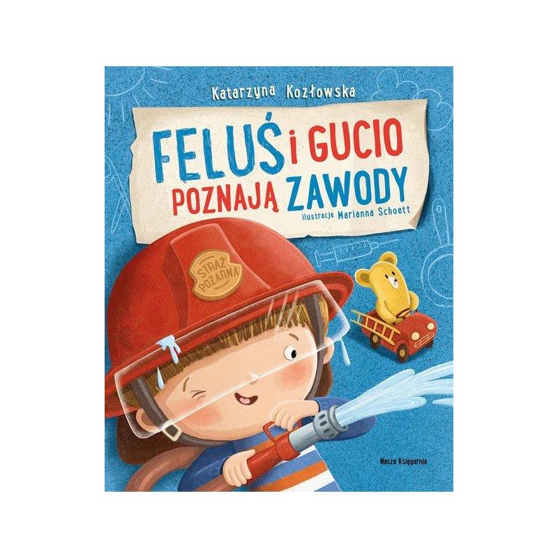 Jak każdy przedszkolak, Feluś jest bardzo ciekawy świata. Fascynują go ludzie wykonujący różne zawody i chętnie ich naśladuje podczas zabaw z kolegami i koleżankami. Raz jest kucharzem, raz odkrywcą kości dinozaurów, a kiedy indziej buduje z klocków niesamowite budowle… Zawsze jednak wspaniale opiekuje się swoim kotem! Feluś ma wiele pasji i próbuje swoich sił w rozmaitych dziedzinach, żeby odkryć, co tak naprawdę lubi robić. Miś Gucio, towarzysz Felusia, także poznaje zawody – chce być fryzjerem albo kierowcą. A może jednak weterynarzem lub aktorem…? Wszystkie zawody są ciekawe! Wspólna lektura zachęci małego czytelnika do odkrywania swoich mocnych stron, do zadawania pytań o zawody osób z najbliższego otoczenia, a także do rozmów o tym, czym są wytrwałość i wykorzystywanie swoich atutów. Katarzyna Kozłowska – absolwentka pedagogiki specjalnej na Uniwersytecie Adama Mickiewicza oraz edukacji artystycznej na Uniwersytecie Artystycznym w Poznaniu. Nauczycielka wychowania przedszkolnego, autorka książek „Feluś i Gucio idą do przedszkola”, „Feluś i Gucio wiedzą, jak się zachować”, „Feluś i Gucio poznają emocje”, „Feluś i Gucio poznają zawody”. Stara się pomagać maluchom i ich rodzicom w radosnym i bezstresowym rozpoczęciu przygody z przedszkolem. Marianna Schoett – ilustratorka książek dla dzieci. Ukończyła Państwowe Liceum Sztuk Plastycznych w Bydgoszczy, a następnie kontynuowała naukę na Wydziale Sztuk Pięknych UMK w Toruniu.
