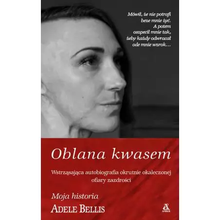 Mówił, że nie potrafi beze mnie żyć. A potem oszpecił mnie tak, żeby każdy odwracał ode mnie wzrok..." Ta tragedia wstrząsnęła Wielką Brytanią. Pisały o niej wszystkie media: od "The Guardian", przez "Mirror" "The Sun", "Standard", po "Marie Claire". "Trudno wyobrazić sobie bardziej dzielną kobietę". "THE GUARDIAN" "Nieustanna kontrola, odizolowanie od ludzi, zastraszanie, wyzwiska, przemoc - oto czym była miłość mojego życia". Adele miała szesnaście lat, gdy poznała Anthony`ego Rileya. Był czuły, opiekuńczy i zakochany do szaleństwa. Kiedy powiedział: "Nie chcę, żebyś rozmawiała z innymi chłopakami", była pewna, że to dowód wielkiej miłości. Potem zabronił jej widywać się z rodzicami i przyjaciółmi. Zmusił, by skasowała swoje konto na Facebooku. Zadręczał telefonami. Zamykał w domu. Wyzywał. Straszył. Bił. Gdy wreszcie odważyła się z nim zerwać, wynajął bandytę, który oblał ją kwasem. Adele pozostanie okaleczona na zawsze... Oto szokująca historia przemocy domowej, ale i hartu ducha i siły woli dzielnej kobiety, która stoczyła niezwykłą walkę o to, żeby podnieść się i dalej żyć: prawie niewidoma na jedno oko, po stracie ucha i części włosów, z ranami, które zostaną na całe życie. W swojej autobiografii ADELE BELLIS ostrzega inne kobiety, jak rozpoznać wczesne sygnały przemocy w związku. Współpracuje z fundacją Katie Piper, brytyjskiej modelki, tak jak Adele okaleczonej ofiary zazdrości byłego chłopaka.
