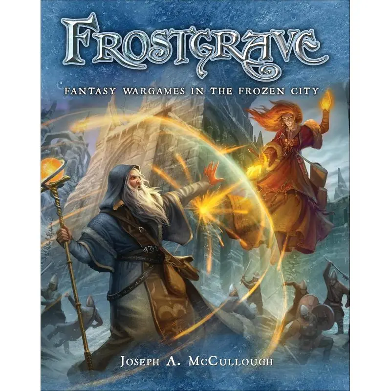 Amidst the frozen ruins of an ancient city, wizards of different creeds are locked in a ferocious struggle. Each of them must seek to discover the treasures of a fallen empire and master long-forgotten but incredibly powerful magical lore. Each player takes on the role of a wizard from one of ten schools of magic, and builds his band of followers. While the wizard's apprentice will usually accompany his master, more than a dozen other henchmen types are available for hire, from lowly thugs to heavily armored knights and stealthy assassins. Wizards can build their magical knowledge by unlocking ancient secrets, with the potential to learn up to 80 spells in total. As players gain power and wealth, they can develop their headquarters on the outskirts of the city, turning one of a dozen different basic locations into bastions of their art, equipping them with alchemical laboratories, mystical forges, astronomical telescopes and other magical resources. While individual games of Frostgrave are quick and can easily be played in an hour or two, it is by connecting these games into an ongoing campaign, that players will find the most enjoyment. The scenarios given in the book are merely the beginning of the limitless, thrilling adventures that can be found amidst the ruins of the lost city.