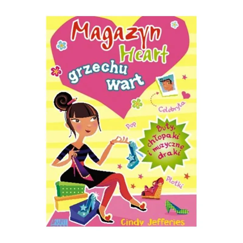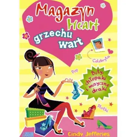 Tytuł: Magazyn Heart grzechu wart. Buty, chłopaki i muzyczne draki Autor: Cindy Jefferies Ellie - przyszła dziennikarka - cały czas nie może jeszcze uwierzyć, że zaczyna właśnie praktykę swoich marzeń w młodzieżowym magazynie "Heart". Dziś redakcję magazynu ma odwiedzić ulubiony zespół Ellie - dziewczyna od rana odlicza godziny do ich wizyty. Tuż przed ich przybyciem poproszono ją o odebranie butów do sesji zdjęciowej od sławnego projektanta - i wygląda na to, że dziewczyna może stracić jedyną szansę poznania swoich idoli. Sprawy przybierają jednak zaskakujący obrót - młoda dziennikarka staje przed kamerami, pozując do zdjęć w nieziemskich butach i w bardzo ciekawym towarzystwie...