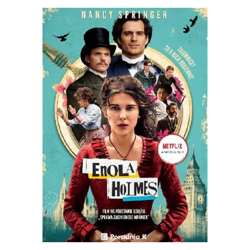 Czy nastoletnia dziewczyna może zostać detektywem? Czy młodej pannie przystoi podróżować na rowerze i wałęsać się samotnie po ulicach wielkiego miasta, gdzie nietrudno wpaść w tarapaty? Taką nastolatką jest Enola Holmes – młodsza siostra słynnego Sherlocka.W dniu czternastych urodzin Enoli znika jej matka. Wbrew decyzji braci, Sherlocka i Mycrofta, na których spada obowiązek zaopiekowania się młodszą siostrą i którzy chcieliby zatrzymać ją na pensji z internatem, dziewczyna ucieka do Londynu, by odszukać matkę.Nasza zuchwała buntowniczka wkrótce się przekona, jak wygląda życie samotnej młodej kobiety w wielkim mieście. Poszukiwana przez najlepszego detektywa w historii i połowę Scotland Yardu, Enola zostaje uwikłana w sprawę porwania młodego markiza. Musi uciekać przed wszelkiej maści złoczyńcami, zostaje obrończynią słabszych i pokrzywdzonych i – przede wszystkim – rozwiązuje swoją pierwszą sprawę kryminalną.A wszystko to dzieje się w scenerii XIX-wiecznego Londynu i okolic! Czy Enola odnajdzie matkę? Czy uda się jej odpowiedzieć na pytanie, dlaczego zniknęła? Do czego może służyć gorset albo tiurniura, gdy się jest zbuntowaną młodą panną?„Seria powieści o Enoli to nie lada gratka dla młodych wielbicieli Sherlocka. Zadziorna i zbuntowana nastolatka sprzeciwia się wszelkim konwenansom, bo chce być wolna i robić to, co kocha – zostać detektywem. A łatwo nie jest. Mamy tu przecież XIX-wieczny Londyn, gdzie kobiety nie mają żadnych praw i perspektyw! Enola się nie poddaje – walczy o siebie i swoją pasję. Świetna przygoda dla młodych dziewczyn!” – mówi Joanna Bażyńska, prezes wydawnictwa Poradnia K.Seria przygód Enoli Holmes została w 2020 roku sfilmowana przez Netflix, tytułową rolę zagrała Millie Bobby Brown, słynna Jedenastka z serialu Stranger Things.