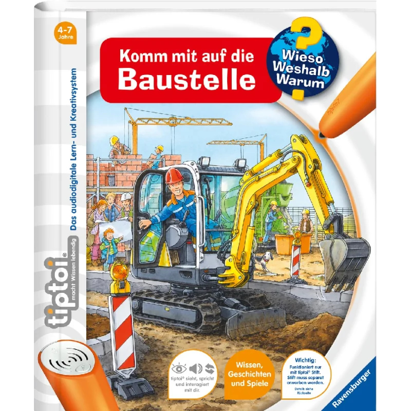 In der ganzen Stadt wird gebaut! In diesem Buch sind Kinder hautnah dabei, wenn vom Ausheben der Baugrube bis zur Schlüsselübergabe ein Einfamilienhaus entsteht. Viele Maschinen kommen hierbei zum Einsatz und Handwerker und Bauarbeiter erzählen Spannendes über ihre unterschiedlichen Aufgaben. Über der Autobahn wird eine neue Brücke errichtet und beim Bau eines U-Bahn-Schachtes erfahren Kinder Wissenswertes über die beeindruckende Tunnelbohrmaschine. Mit vielen Sounds, detailreichen Bildern und kniffligen Spielen ein absolutes Muss für alle Baustellen- und Fahrzeugfans.