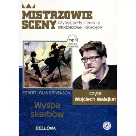 Klasyczna powieść przygodowa o losach piratów poszukujących ukrytego skarbu. To z tej ogromnie popularnej książki pochodzi większość znanych dzisiaj wyobrażeń i mitów o piratach w tym modelowa chyba postać kucharza okrętowego z drewniana nogą. Ta książka to po prostu klasyka którą trzeba znać obowiązkowa dla fanów przygód piratów i zakopanych skrzyń. Publikacja stała się wzorcem dla współczesnych filmów i książek o morskich rabusiach. Wyspa skarbów to nie tylko książka o piratach także o tajemnej wyspie na której ukryty jest skarb. Jest zakamuflowany pirat John Silver jest młody Jim Hawkins który dopiero uczy się życia. I jest niesamowita przygoda która wciąga do lektury młodych czytelników po dziś dzień. Czyta Wojciech Malajkat