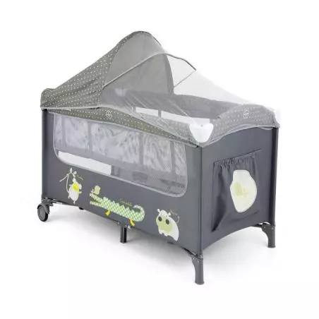 Łóżeczko dwupoziomowe, posiada solidną konstrukcję. 2 boki wykonane są z przezroczystej siatki. Usztywniany materac zapewnia komfort dziecku, natomiast składana konstrukcja umożliwia wygodny transport. Dno łóżeczka oparte jest na stabilnej krzyżakowej konstrukcji. Idealnie spełnia funkcje kojca, przenośnego jak i domowego łóżeczka oraz