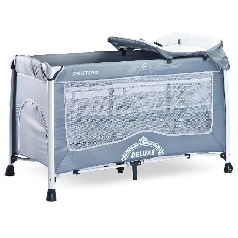 Caretero Deluxe to funkcjonalne łóżeczko turystyczne, które zapewni komfort, bezpieczeństwo i wygodę zarówno dziecku, jak i rodzicom. Zaprojektowane z myślą o codziennej pielęgnacji niemowląt, łączy lekkość aluminiowej konstrukcji z praktycznymi rozwiązaniami takimi jak