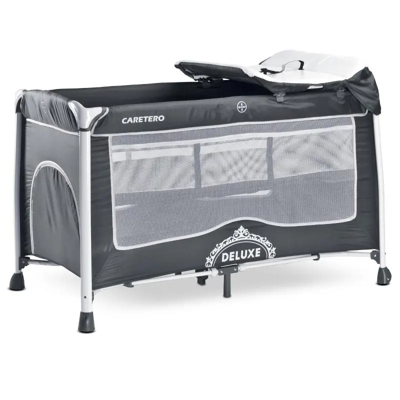 Caretero Deluxe Graphite to wielofunkcyjne łóżeczko turystyczne, zaprojektowane z myślą o komforcie dziecka i wygodzie rodziców. Odpowiednie od pierwszego miesiąca życia aż do osiągnięcia wagi 15 kg. Dzięki lekkiej, aluminiowej konstrukcji i kompaktowym wymiarom po złożeniu, idealnie