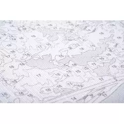 • wstępnie rozgraniczono liniami na wiele stref. każda strefa jest oznaczona cyframi, cyfrom odpowiadają kolory, którymi należy malować płótno