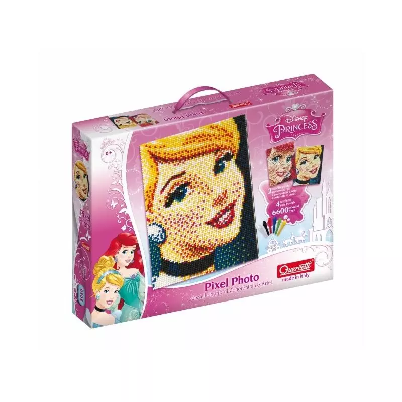 Quercetti mozaika pixel art. 4 princess, tworzenie mozaiki poprzez wstawianie kołeczków w perforowaną tablicę zgodnie z proponowanym wzorem jest wspaniałą i twórczą zabawą.
