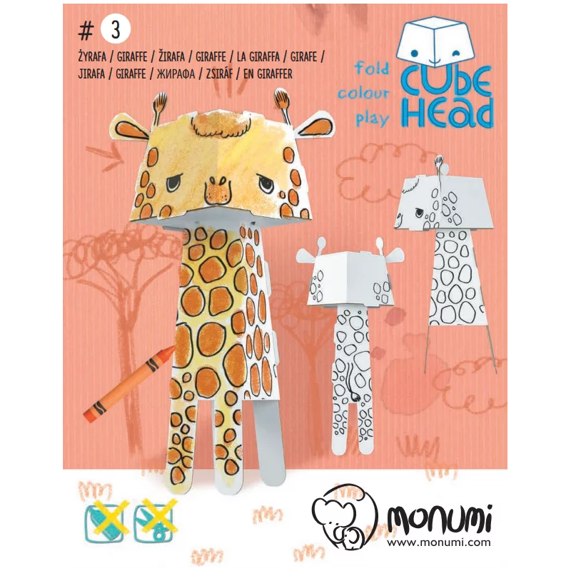 Kartonowy model Żyrafa MONUMI CUBE HEAD do składania i kolorowania