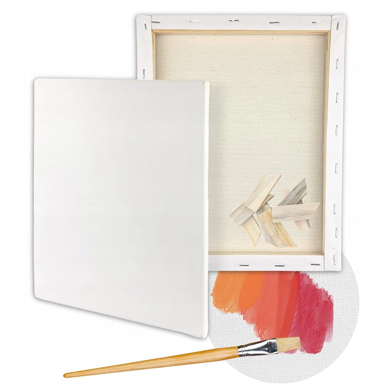 Płótno jest wykonane z wysokiej jakości bawełny, starannie naciągniętej na drewnianą ramę, co zapewnia idealną stabilność podczas malowania.