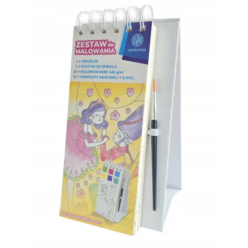 Odkryj niezwykłą malowankę z farbkami i pędzelkiem od AstraFun. Wewnątrz znajdziesz aż 20 arkuszy do pomalowania.