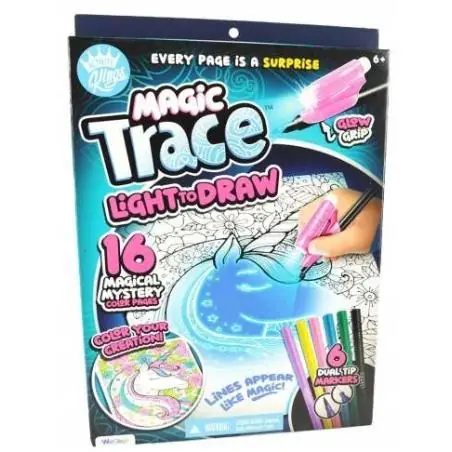 Możesz łatwo śledzić łuki, które widzisz w świetle za pomocą markerów, a następnie pokolorować wzory według własnego uznania. Dzięki zestawowi startowemu Magic Trace możesz stworzyć 16 niesamowitych rysunków.