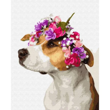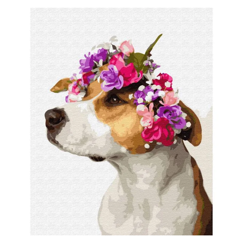 - Co znajduje się w zestawie Malowanie po numerach – Pies z kwiatami?