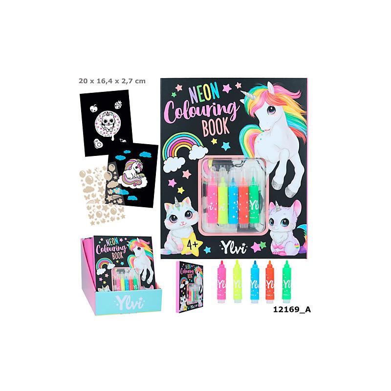 Kolorowanka z neonowymi flamastrami Jednorożec 5 kolorów. W zestawie kolorowanka (ok.25 stron), 1 strona z naklejkami, 5 neonowych flamastrów: różowy, żółty, czerwony, niebieski, zielony).