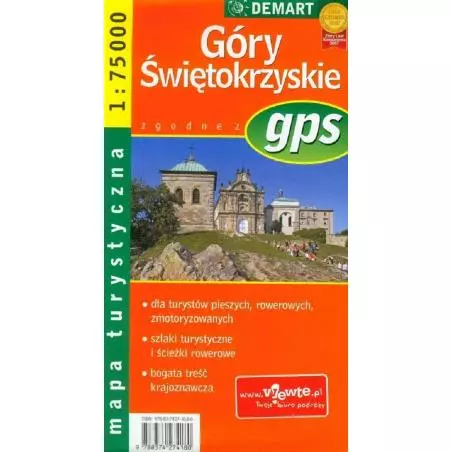Góry Świętokrzyskie to turystyczna mapa opracowana w skali 1:75 000. Szeroki zasięg (oprócz Świętokrzyskiego PN obejmuje również parki krajobrazowe okolic Kielc) i bogactwo treści sprawia, że jest polecana dla turystów pieszych (czasy przejść na szlakach), rowerowych, konnych i zmotoryzowanych. Na mapę naniesiono również siatkę kilometrową w układzie PUWG – 92; WGS84 umożliwiającą współpracę z urządzeniami nawigacyjnymi (GPS).