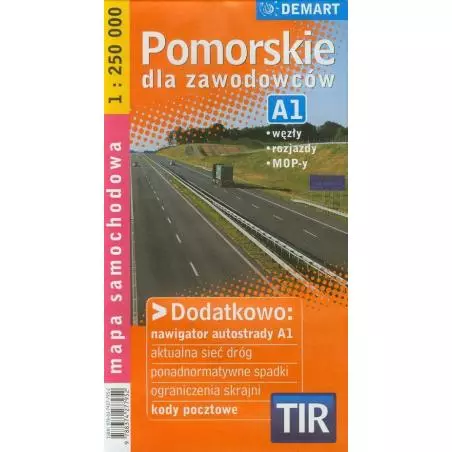 Mapa przeznaczona jest nie tylko dla kierowców zawodowych (TIR-ów, ciężarówek,) ale i dla wszystkich innych kierowców, którzy dużo jeżdżą po Polsce.Ma rozbudowaną treść tematyczną przydatną kierowcom zawodowym:- nawigator autostrady A1- ponadnormatywne spadki z opisem stopnia nachylenia,- pionowe i poziome ograniczenia skrajni, - spis kodów