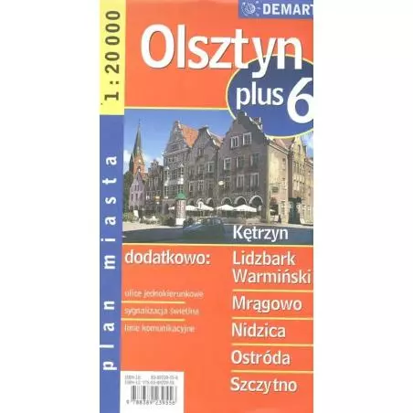 Plan Olsztyna w skali 1:20 000 plus centrum w skali 1:10 000, wzbogacony o plany najważniejszych miast w okolicy. Mapa okolic w skali 1:800 000. - Ulice jednokierunkowe - Sygnalizacja świetlna - Linie komunikacyjne