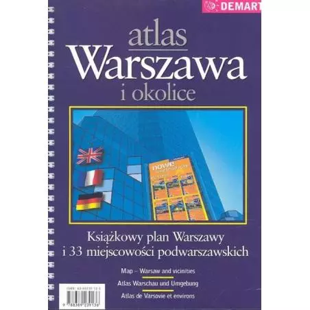 Atlas Warszawy w skali 1:20 000, wzbogacony o 33 plany okolicznych miast i miejscowości, - ulice jednokierunkowe, - sygnalizacja świetlna, - linie komunikacyjne.
