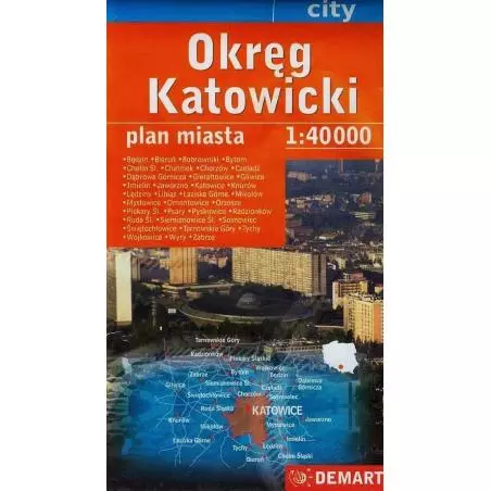 Plan Okręgu Katowickiego w skali 1:40 000. Zawiera plany 36 miast w okolicy. - Sygnalizacja świetlna - Szlaki turystyczne - Ścieżki rowerowe - Spisy ulic miast.
