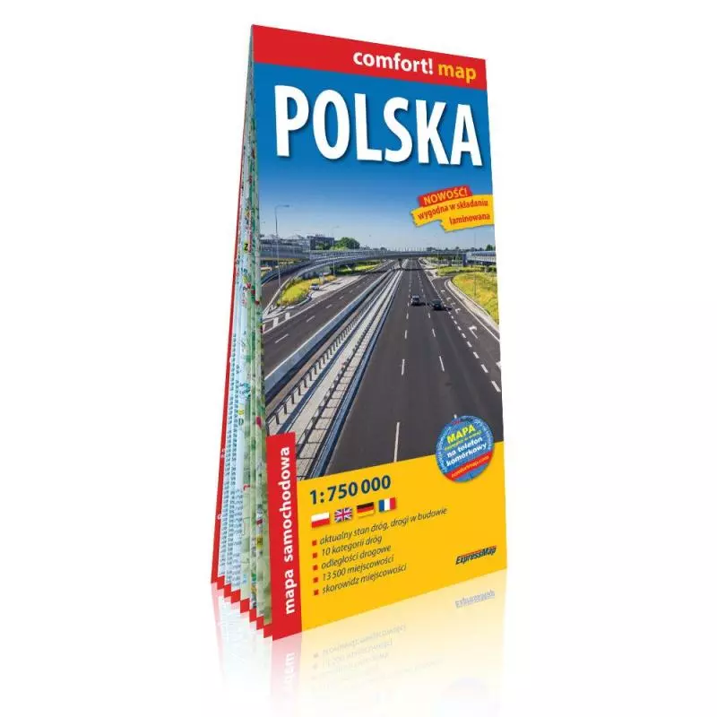 Z mapą samochodową Polski podróż od Gdańska po Kraków będzie czystą przyjemnością. Publikacja zawiera aktualne informacje drogowe, a do tego jest całościowo pokryta laminatem, wyjątkowo trwała, wodoodporna i łatwa w składaniu.