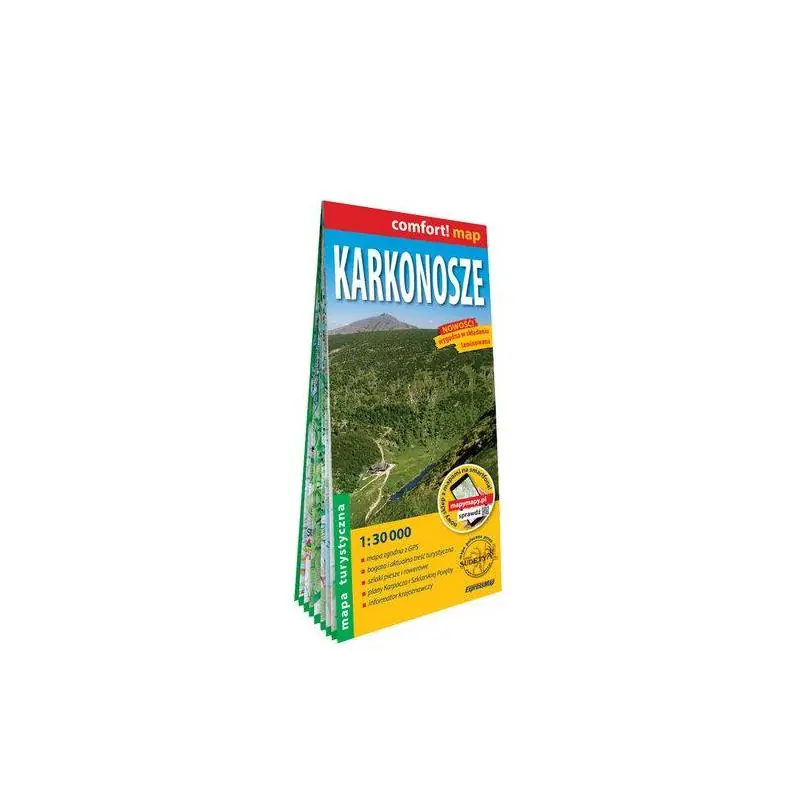 Karkonosze Najwyższe pasmo górskie Sudetów to gratka dla wspinaczy, odnajdą się tu także trekkingowcy, rowerzyści i narciarze. Nasza dwustronnie laminowana mapa, opracowana we współpracy z doświadczonymi krajoznawcami z regionu, pomoże zaplanować udane wakacje w Karkonoszach. Obejmuje obszar od Przełęczy Szklarskiej na zachodzie po Przełęcz