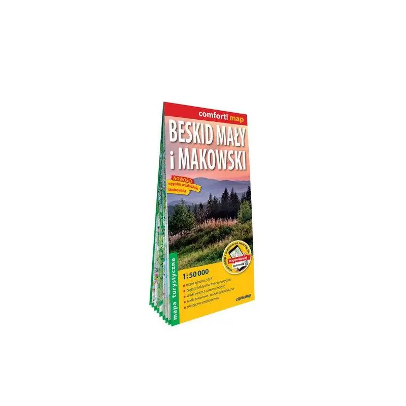 Beskid Mały i Makowski Zdobycie Lubomira i góry Żar, kąpiel w Jeziorze Międzybrodzkim, podziwianie zabytków architektury w Żywcu. Dwustronnie laminowana, wygodna w użyciu mapa turystyczna Beskidu Małego i Makowskiego obejmuje swoim zasięgiem tereny od Bielska-Białej i Żywca na zachodzie, po Myślenice i Jordanów na wschodzie. Publikacja została opracowana we współpracy z krajoznawcami z regionu. Cechy mapy: - dogodna dla turysty skala 1:50 000 (1 cm – 500 m), - bogata treść turystyczna, - zgodność z GPS – współrzędne geograficzne w układzie WGS-84. Na mapie m.in.: - szlaki piesze i czasy przejść, szlaki rowerowe, ścieżki rowerowe oraz ścieżki dydaktyczne i spacerowe, - wyciągi i trasy narciarskie o muzea, zabytki i inne interesujące obiekty, - schroniska górskie i młodzieżowe, kempingi, pola namiotowe, hotele i pensjonaty, - parki narodowe i krajobrazowe, rezerwaty przyrody, atrakcje przyrodnicze, - cieniowanie plastycznie pokazujące ukształtowanie terenu.