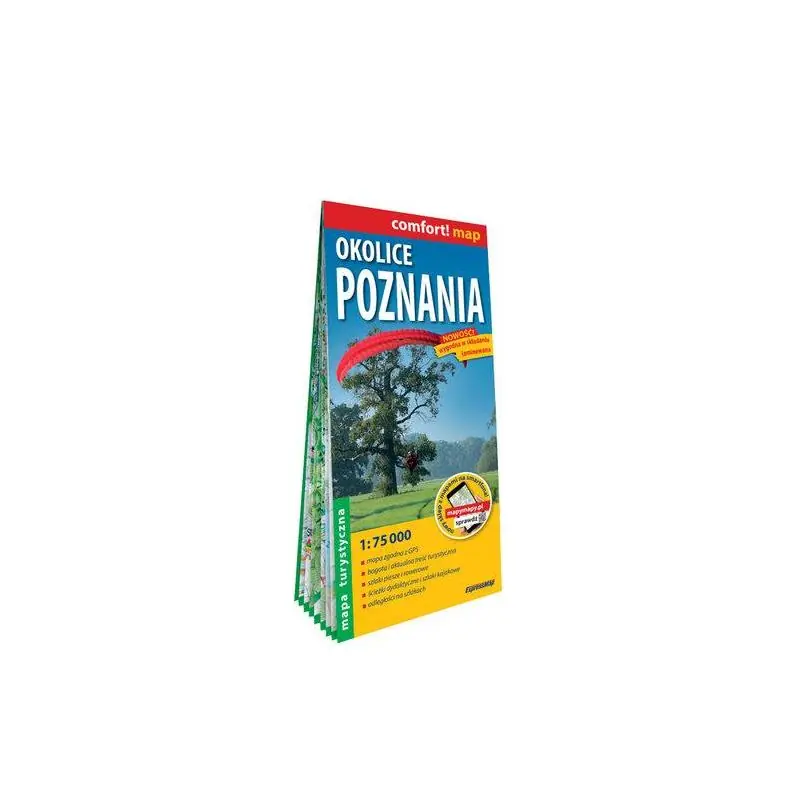 Okolice PoznaniaDwustronnie laminowana, wygodna w składaniu mapa turystyczna okolic Poznania powstała we współpracy z krajoznawcami z regionu. Została wykonana w dogodnej zarówno dla pieszego, jak i rowerzysty skali 1:75 000 (1 cm – 750 m) i jest zgodna z GPS (współrzędne geograficzne w układzie WGS-84).Mapa posiada bogatą treść turystyczną, m.in.: • szlaki piesze i rowerowe oraz ścieżki dydaktyczne i spacerowe, • odległości na szlakach, • wyciągi i trasy narciarskie, • muzea, zabytki i inne interesujące obiekty, • hotele, schroniska młodzieżowe, kempingi, • parki narodowe i krajobrazowe, rezerwaty przyrody, atrakcje przyrodnicze.