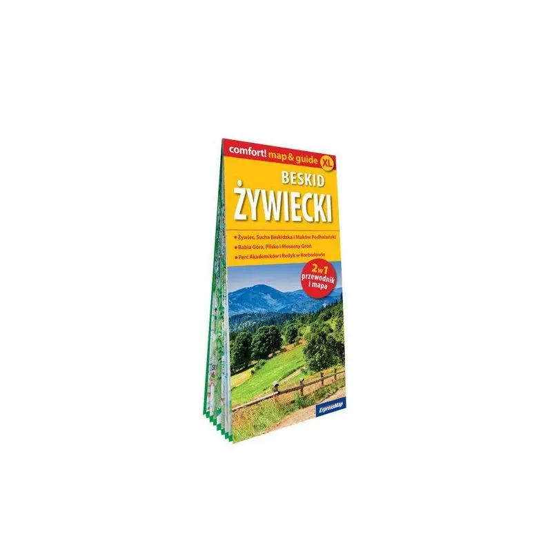 Beskid Żywiecki • Żywiec, Sucha Beskidzka i Maków Podhalański • Babia Góra, Pilsko i Mosorny Groń • Tydzień Kultury Beskidzkiej i Redyk w Korbielowie Wspinaczka na Babią Górę i wędrówka Percią Akademików. Białe szaleństwo na Pilsku i Mosornym Groniu. Zamek i Muzeum Browaru w Żywcu, Stara Karczma w Jeleśni i Orawski Park Etnograficzny w Zubrzycy Górnej. Żywieckie festiwale, atrakcje dla dzieci i propozycje dla aktywnych. Mimo niewielkiego formatu, udało się w nim zawrzeć to, co niezbędne, by zaplanować ciekawy wyjazd: Comfort! map&guide XL „Beskid Żywiecki” pomoże dotrzeć do wszystkich ciekawych zakątków tego regionu. To wyjątkowe połączenie mapy i przewodnika zawiera wszystkie informacje niezbędne zarówno na krótki wyjazd, jak i dłuższe wakacje. Map&guide w nowej odsłonie – większy format i jeszcze więcej treści: •zajmujące opisy dwudziestu pięciu najciekawszych miejsc wartych odwiedzenia, •propozycje sześciu wycieczek górskich wraz z profilami tras, informacjami o stopniu trudności i czasach przejść, • łatwa nawigacja: atrakcje i trasy ponumerowane i zaznaczone na mapie, • poręczny format, wygoda składania i trwałość, • mapy i plany w skalach użytecznych dla turystów (mapa samochodowa regionu 1:200 000, mapa turystyczna ze szlakami górskimi 1:50 000, plany Żywca i Bielska-Białej 1:15 000), • opisane panoramy przedstawiające widoki z najpopularniejszych szczytów, •przydatne informacje praktyczne: dni i godziny otwarcia obiektów, ceny biletów, ważne dane teleadresowe, • propozycje aktywnego wypoczynku, • ciekawostki i kolorowe fotografie.