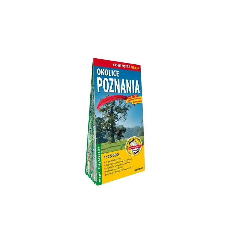 Okolice Poznania Dwustronnie laminowana, wygodna w składaniu mapa turystyczna okolic Poznania obejmuje niezwykle atrakcyjne tereny od Śremia, przez Rogalin, Kórnik i pobliski Wielkopolski Park Narodowy, Puszczykowo, Jezioro Lusowskie i termy w Tarnowie Podgórnym, po otoczony szlakiem kościołów drewnianych Park Krajobrazowy „Puszcza Zielonka” z