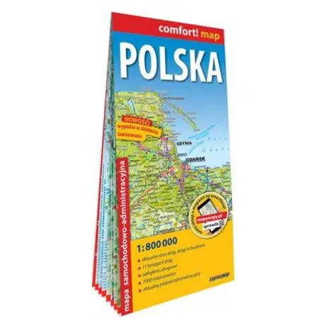 Solidna, dwustronnie laminowana, składana mapa administracyjno-samochodowa Polski.