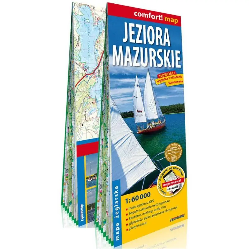 Żeglarska mapa Krainy Wielkich Jezior Mazurskich jest dwustronnie laminowana, trwała i wodoodporna, dzięki czemu sprawdzi się w każdych warunkach, zarówno na łódce, na jachcie, jak i na lądzie. Poza bogatą treścią żeglarską zawiera też treść turystyczną. Dodatkowo plany Węgorzewa, Giżycka, Pisza, Mikołajek, Rucianego-Nidy i Rynu w skali