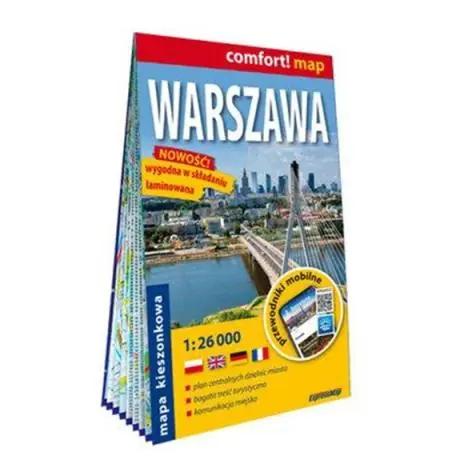Warszawa Spacer po Łazienkach, wizyta w Zamku Królewskim, mecz na Stadionie Narodowym – z kieszonkowym planem centralnych dzielnic Warszawy bez trudu trafisz do każdego miejsca w stolicy. Publikacja jest dwustronnie laminowana, wyjątkowo trwała i wygodna w składaniu. Na mapie m.in.: • szczegółowy rysunek zabudowy wraz z numeracją budynków wzdłuż ulic i na osiedlach, • linie autobusowe i tramwajowe wraz z przystankami, linie metra • sygnalizacja świetlna, ulice jednokierunkowe, • parkingi, stacje benzynowe, • bogata treść turystyczna, m.in.: zabytki, muzea, hotele i inne istotne obiekty, budynki użyteczności publicznej, centra handlowe, • skorowidz ulic. Powyższy opis pochodzi od wydawcy."