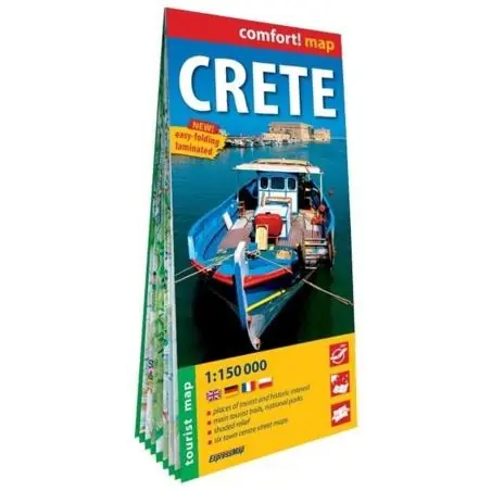 • cieniowanie plastycznie pokazujące ukształtowanie terenu, • plany najważniejszych miast: Chania, Rethymno, Iraklio, Agios Nikolaos, Sitia, Ierapetr. Powyższy opis pochodzi od wydawcy.