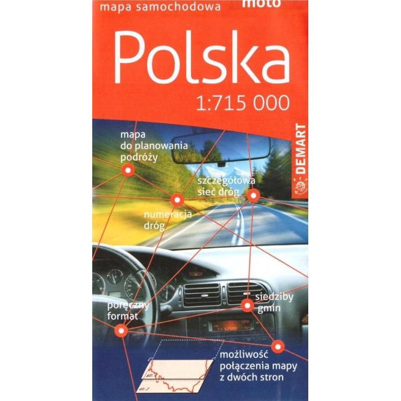 Polska 1:715 000 mapa samochodowa. Aktualna numeracja dróg.
