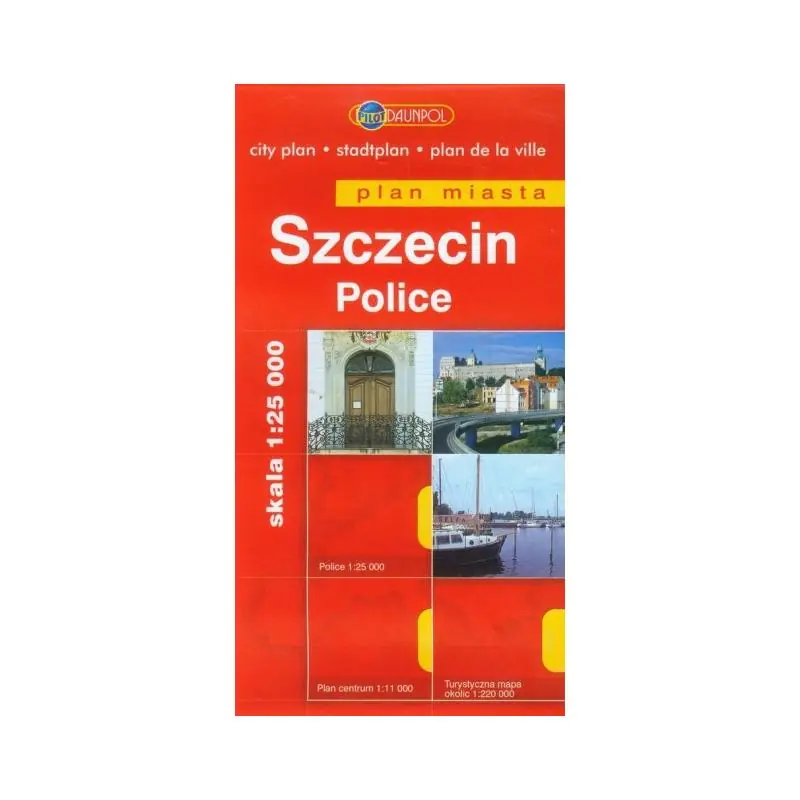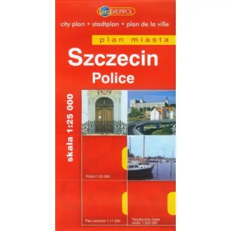 Plan miasta Szczecin w skali 1:25 000. Dodatkowo zawiera plan miasta Police. Plan centrum w skali 1:11 000 Mapa okolic w skali 1:220 000