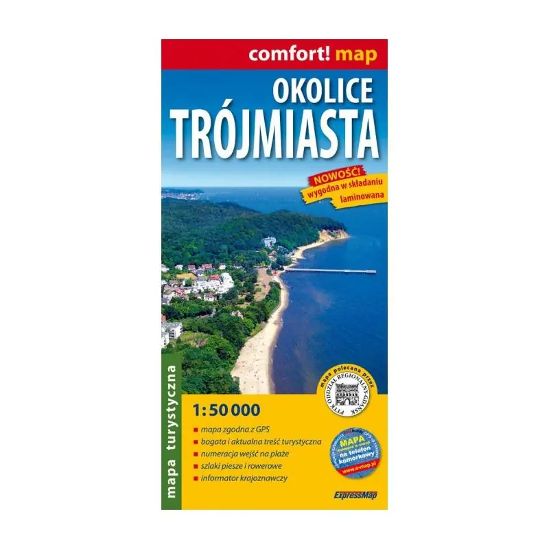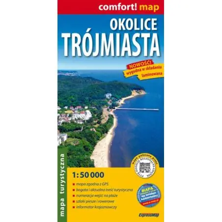 Dwustronnie laminowana, wygodna w składaniu mapa turystyczna okolic Trójmiasta obejmuje swoim zasięgiem obszar od Wejherowa po Kartuzy, Pruszcz Gdański i ujście Wisły w Mikoszewie. Publikacja została opracowana we współpracy z doświadczonymi krajoznawcami z regionu.