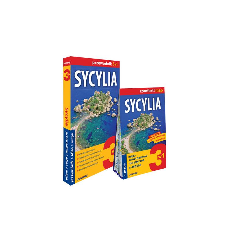 Słoneczna wyspa usiana zabytkami: od starożytnych ruin w Syrakuzach i Agrigento, przez olśniewające budowle arabsko-normańskie w Palermo i Monreale, po barokowe perełki w Noto i Ragusie. Rajskie plaże, egzotyczna przyroda, gaje cytrusowe i górujący nad wyspą czynny wulkan – Etna. Do tego teatry marionetek, historyczne targi, barwne procesje i huczne obchody karnawału. Wyśmienita kuchnia: słodkie rurki – cannoli siciliani, marcepanowe frutti di Martorana, owoce morza i granita na ochłodę. Przewodnik ExpressMap po Sycylii pomoże odkryć tę gorącą włoską wyspę. Nowa jakość wśród przewodników – wyjątkowe połączenie barwnych opisów i szczegółowych map: mapy tras zwiedzania przedstawiające lokalizację wszystkich opisywanych miejsc, bogata treść – historia i kultura, przyroda i tradycje, ciekawostki i anegdoty, przydatne informacje praktyczne – dni i godziny otwarcia obiektów, ceny biletów, transport publiczny, noclegi, pogoda, opisy tras pieszych, rowerowych i samochodowych, informacje o lokalnej kuchni i fiestach, pomysły na oryginalne pamiątki z podróży, przejrzysty układ graficzny umożliwiający łatwe wyszukiwanie informacji, szczegółowy atlas Sycylii, na którym zaznaczono miejsca opisane w przewodniku, dwustronnie laminowana mapa dołączona do przewodnika.