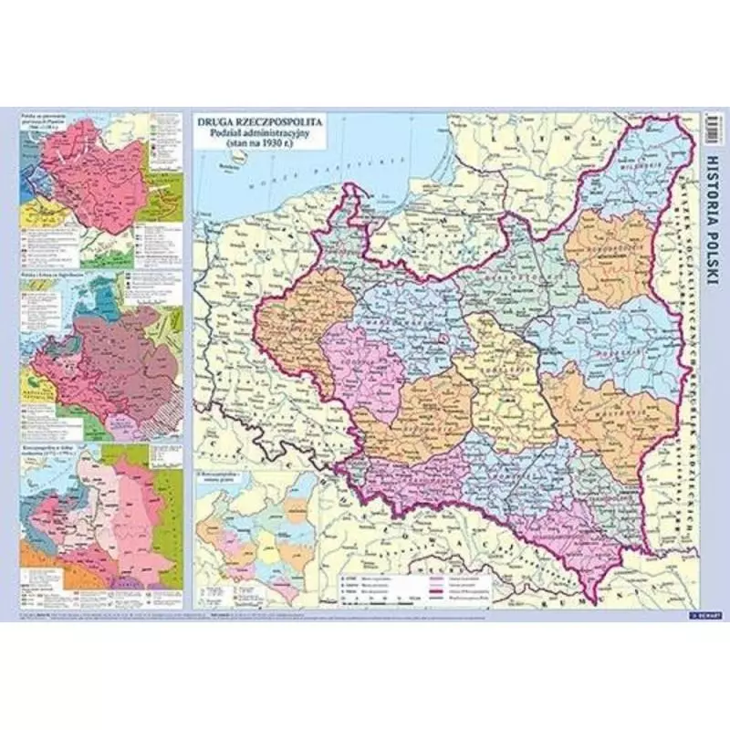 Zawiera mapy administracyjne Polski, odPolski pierwszych Piastów, poprzez czasy Jagiellonów, rozbiory, II Rzeczypospolitą aż do Polski współczesnej.