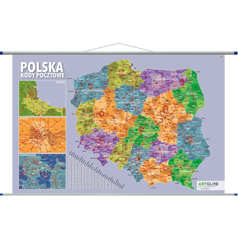 Polska - mapa ścienna kodów pocztowych.