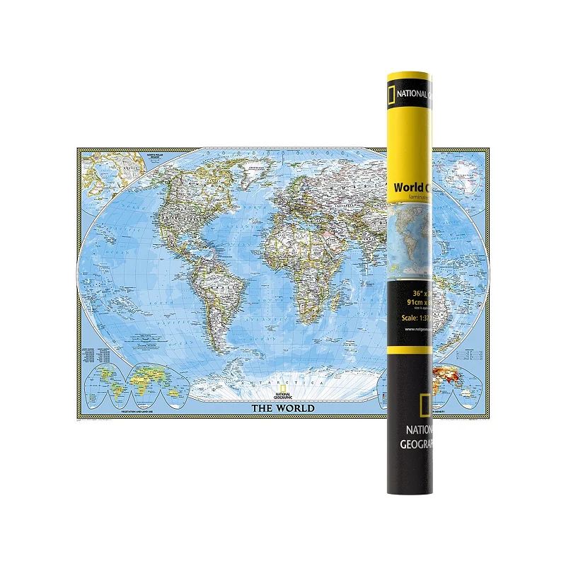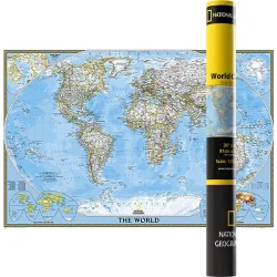 Mapa ścienna Świat Classic w skali 1:37 213 000 zawiera m.in.: mini mapę bieguna północnego, mini mapę bieguna południowego, zaznaczone stolice wszystkich krajów świata, zaznaczone większe międzynarodowe lotniska, lista 10 największych krajów ze względu na populację/powierzchnię. Dodatkowo: Mapa jest w postaci arkusza papierowego, laminowanego laminatem matowym, zapakowanego w elegancką tubę, do samodzielnej oprawy w dowolny sposób. Seria Classic National Geographic, to bardzo dobrze rozpoznawalne, charakterystyczne odcienie błękitu przeplatane z piaskowym kolorem, a do tego wielobarwny kontur odznaczający na mapie poszczególne obszary. Piękna ozdoba, praktyczna informacja, pomoc dla ucznia i studenta, żywa kolorystyka świetnie nadająca się do biura i pokoju.