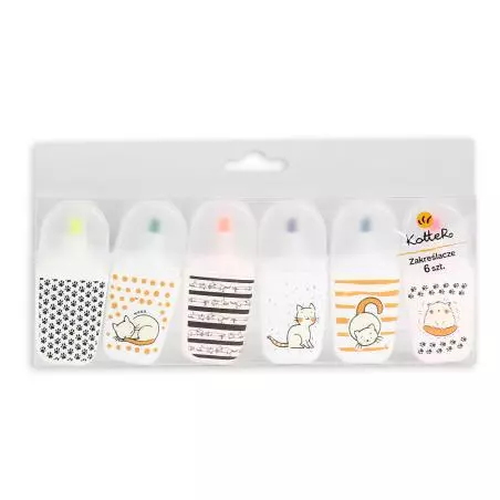 - małe zakreślacze w różnych kolorach: żółty, zielony, pomarańczowy, fioletowy, niebieski, różowy