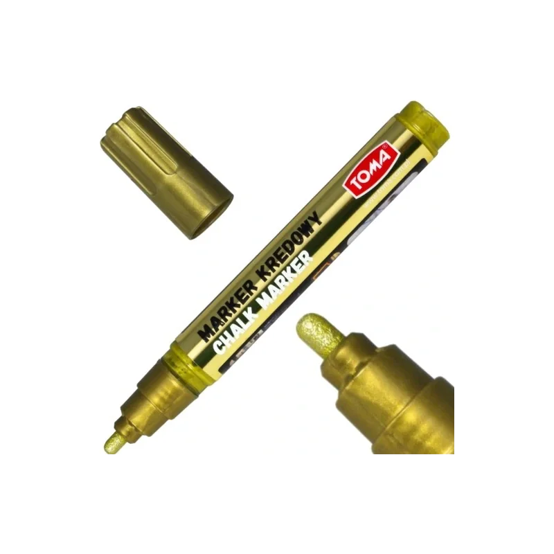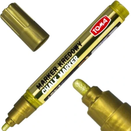 Marker z płynna kredą,do pisania po tablicach czarnych, białych, po szkle i powierzchniach plastikowych. Zmywalny wodą jak zwykła kreda. Nasączalne końcówki fibrowe, bezwonny tusz pigmentowy nie zawiera xylenu