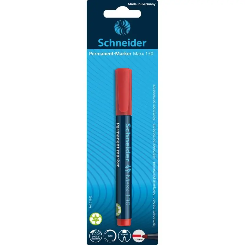 Schneider Maxx 130 1–3 mm czerwony to połączenie trwałości i precyzji. Wodoodporny tusz permanentny gwarantuje długotrwały efekt, a zakres szerokości pisania 1–3 mm umożliwia wszechstronne zastosowanie. To niezawodne rozwiązanie do profesjonalnego i domowego znakowania.