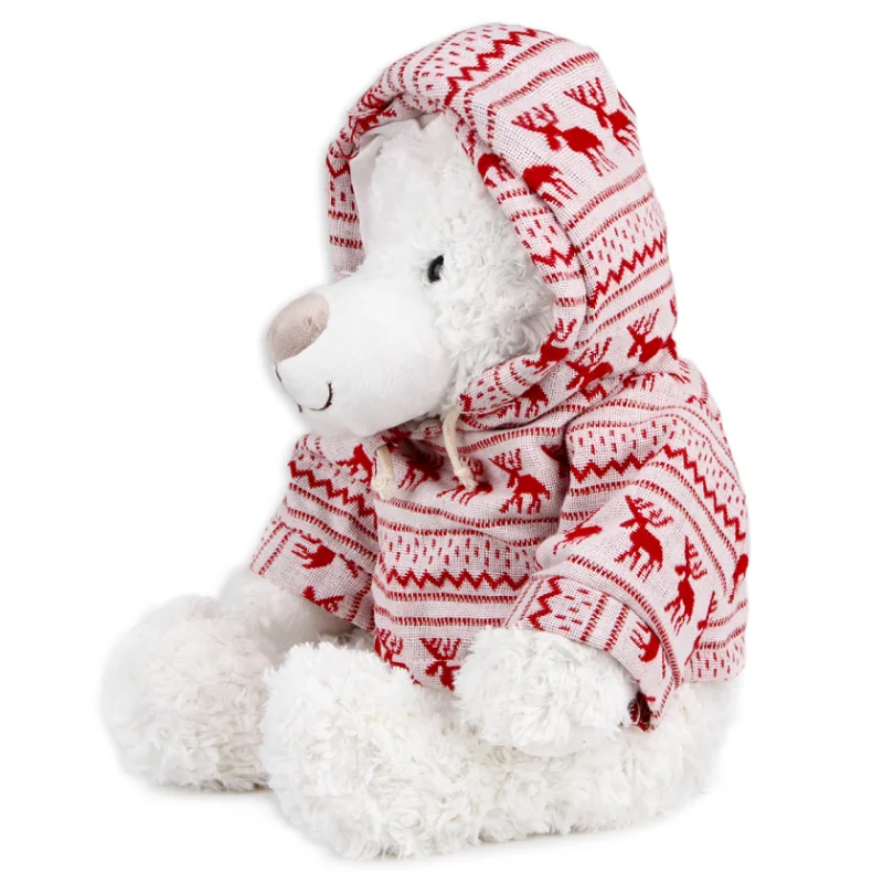 Biały miś w świątecznej bluzie o wysokości 33 cm to urocza, miękka maskotka, która wprowadza magiczny nastrój świąt do każdego domu. Doskonały jako prezent dla dzieci i dorosłych, sprawdzi się również jako dekoracja bożonarodzeniowa. Miś został wykonany z miękkiego, przyjemnego w dotyku materiału, a jego świąteczny ubiór dodaje mu wyjątkowego charakteru.