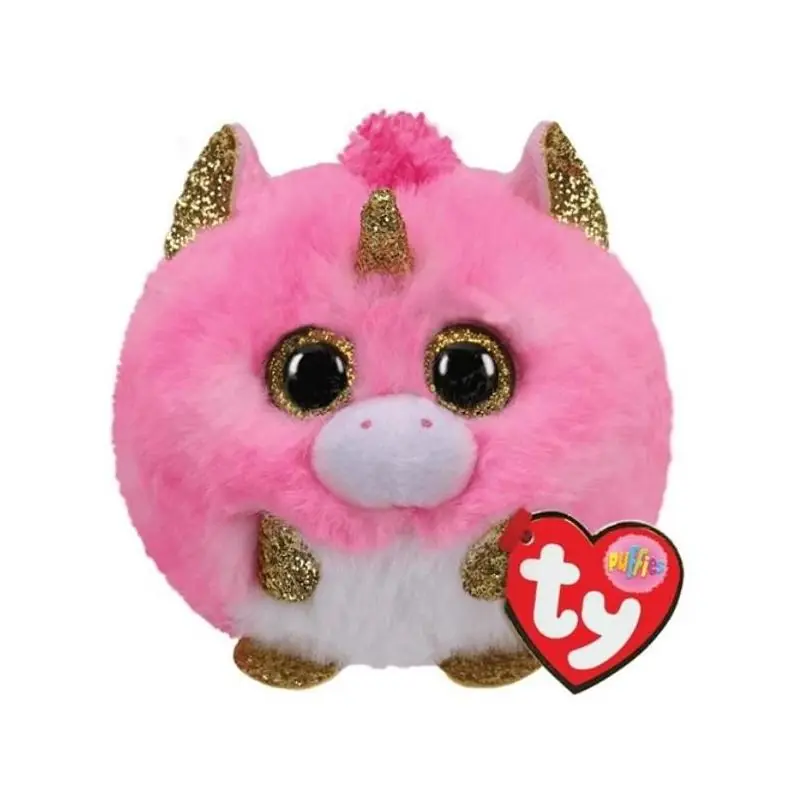 Ty Puffies Fantasia – różowy jednorożec to urocza, kolekcjonerska maskotka o charakterystycznym błyszczącym spojrzeniu i puszystym, kulistym kształcie. Zaprojektowany z myślą o dzieciach i miłośnikach serii Ty Beanie Boos, przyciąga wzrok swoim kolorowym futerkiem i