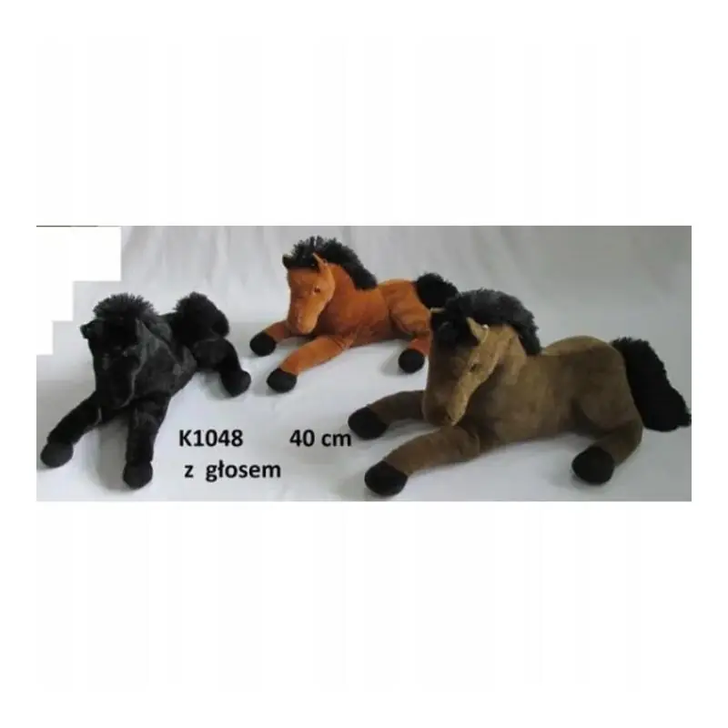 Pluszak Koń 40 cm z głosem to uroczy i miękki przyjaciel, który bawi i rozwesela każde dziecko. Leżąca pozycja umożliwia łatwe przytulanie, a wbudowany interaktywny mechanizm wydaje realistyczne odgłosy konia, zapewniając jeszcze większą radość podczas zabawy.