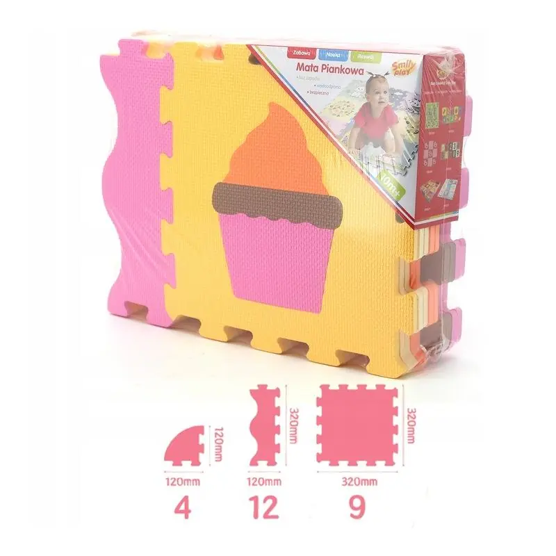Puzzle piankowe – kojec / mata podłogowa Jedzenie, Lody, Słodycze SP83579 to doskonała zabawka edukacyjna dla dzieci od 12 miesięcy. Wielofunkcyjna, bezpieczna i przyjemna w dotyku mata zachęca do kreatywnej zabawy, nauki kolorów, kształtów i budowania figur przestrzennych.